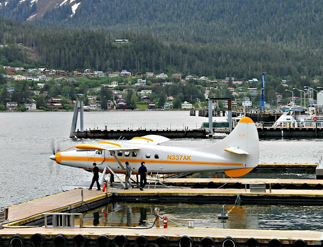 | Landed in Yakutat (that's cousin James front-and-center, nephew Kenneth was also on board)... |